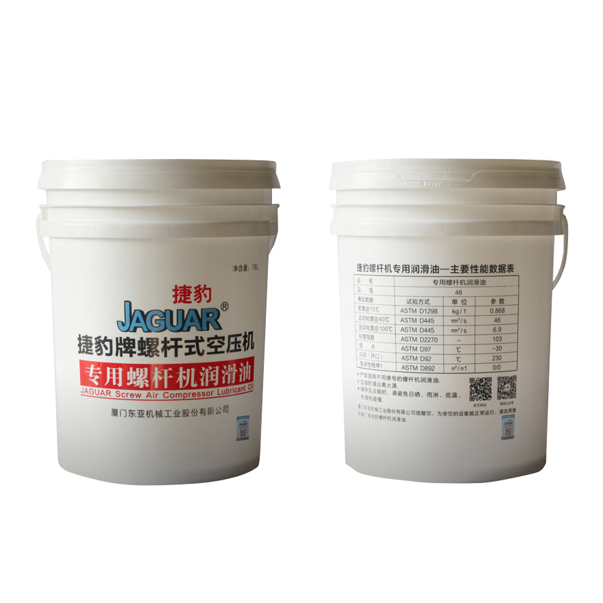 捷豹牌螺桿式空壓機(jī)選用原裝進(jìn)口高品質(zhì)螺桿式空壓機(jī)專用油,采用精制石蠟基基礎(chǔ)油及特選添加劑調(diào)制而成的優(yōu)質(zhì)無灰型空氣壓縮機(jī)油。給金屬表面提供全面的保護(hù),同時有極佳的抗氧化性和熱穩(wěn)定性,也有良好的抗磨性、分水性、空氣釋放性以及防腐蝕特性。